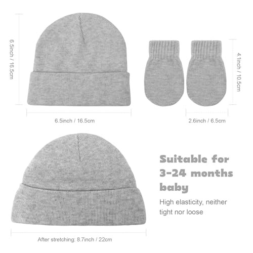 DRESHOW Baby Beanie Hat Mitten Set Infant Toddler Kids Winter Warm Knit Hat with Gloves for 3 Months - 5 Years Girls Boys Children