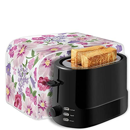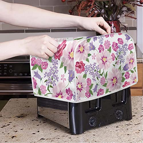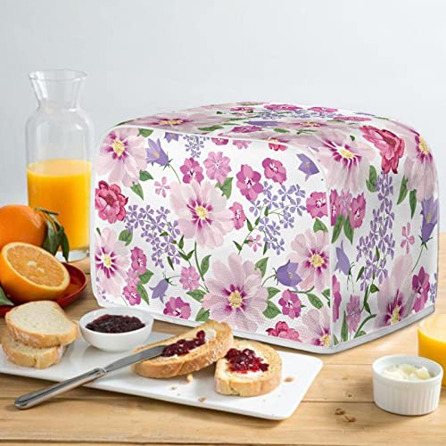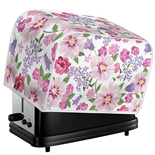 TOADDMOS Pink Floral Print Toaster Covers 2 Slice Wide Slot Decorative,Small Kitchen Appliance Bread Maker Dust and Fingerprint Protection