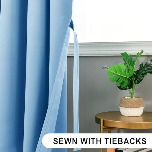 DWCN Blackout Curtains for Bedroom Thermal Insulated Curtain with Tiebacks Pencil Pleat Curtains for Living Room 46 x 54 inch Length, Light Blue, 2 Panels