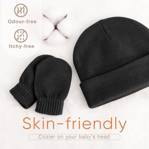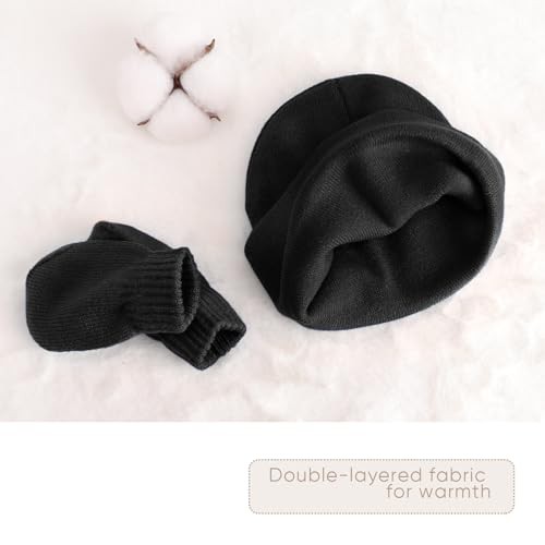 DRESHOW Baby Beanie Hat Mitten Set Infant Toddler Kids Winter Warm Knit Hat with Gloves for 3 Months - 5 Years Girls Boys Children