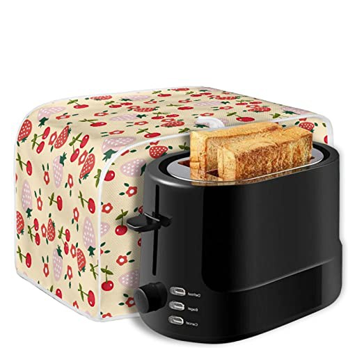TOADDMOS Strawberry Floral Print Toaster Cover 2 Slice with Top Hook,Kitchen Appliance Cover Toaster Dust and Fingerprint Protection