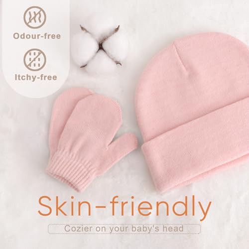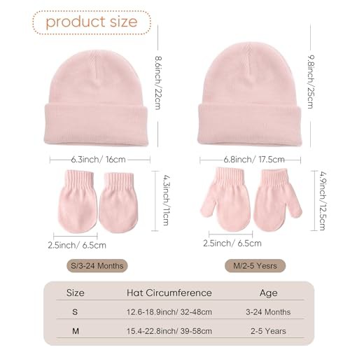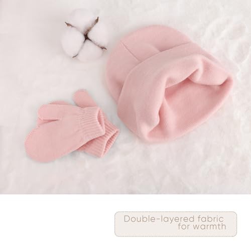 DRESHOW Baby Beanie Hat Mitten Set Infant Toddler Kids Winter Warm Knit Hat with Gloves for 3 Months - 5 Years Girls Boys Children