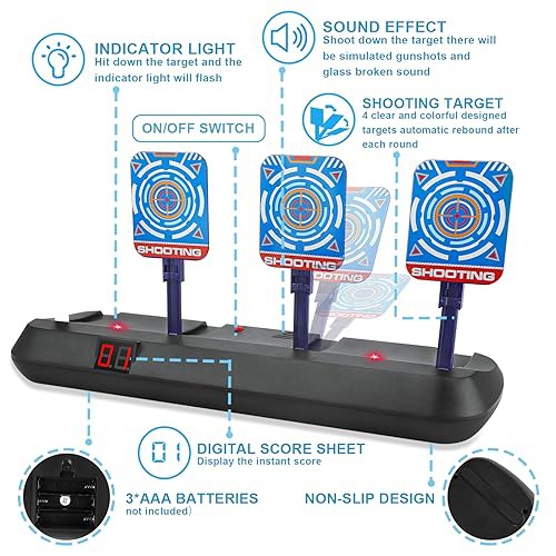 ['Full equipped shooting target set: The whole shooting set includes 1 toy gun,4 targets, 20 PCS gun bullets and 1 wrist band. No need to buy other accessory at all.The electronic target is suitable for Nerf N-Strike Elite / Mega / Rival series and other brands of blaster pistol toy.', 'Full equipped shooting target set: The whole shooting set includes 1 toy gun,4 targets, 20 PCS gun bullets and 1 wrist band. No need to buy other accessory at all.The electronic target is suitable for Nerf N-Strike Elite / Mega / Rival series and other brands of blaster pistol toy.', 'Full equipped shooting target set: The whole shooting set includes 1 toy gun,4 targets, 20 PCS gun bullets and 1 wrist band. No need to buy other accessory at all.The electronic target is suitable for Nerf N-Strike Elite / Mega / Rival series and other brands of blaster pistol toy.', 'Full equipped shooting target set: The whole shooting set includes 1 toy gun,4 targets, 20 PCS gun bullets and 1 wrist band. No need to buy other accessory at all.The electronic target is suitable for Nerf N-Strike Elite / Mega / Rival series and other brands of blaster pistol toy.', 'Full equipped shooting target set: The whole shooting set includes 1 toy gun,4 targets, 20 PCS gun bullets and 1 wrist band. No need to buy other accessory at all.The electronic target is suitable for Nerf N-Strike Elite / Mega / Rival series and other brands of blaster pistol toy.']