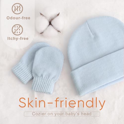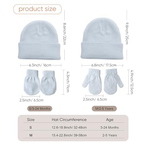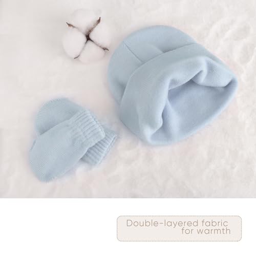 DRESHOW Baby Beanie Hat Mitten Set Infant Toddler Kids Winter Warm Knit Hat with Gloves for 3 Months - 5 Years Girls Boys Children