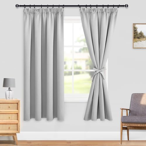 DWCN Blackout Curtains for Bedroom Thermal Insulated Curtain with Tiebacks Pencil Pleat Curtains for Living Room 46 x 54 inch Length, Silver Grey, 2 Panels