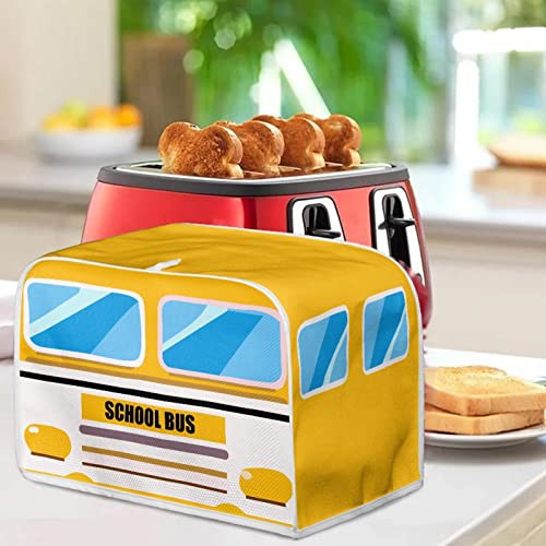 TOADDMOS School Bus Print Toaster Cover 4 Slice Wide Slot Decorative,Small Kitchen Appliance Bread Maker Dust and Fingerprint Protection