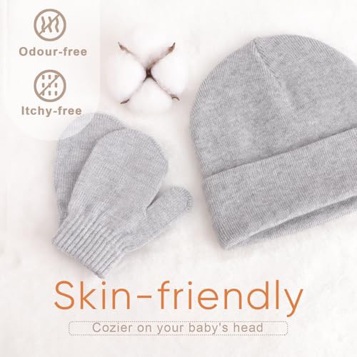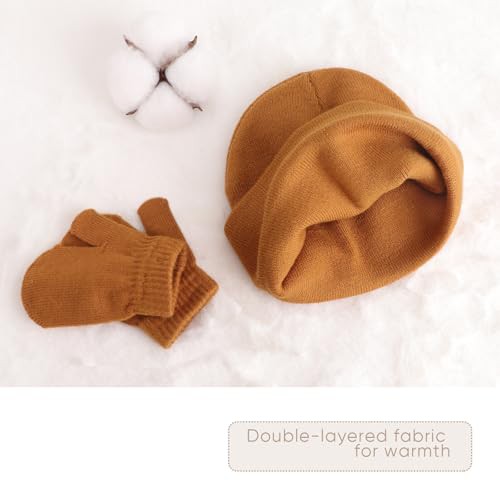 DRESHOW Baby Beanie Hat Mitten Set Infant Toddler Kids Winter Warm Knit Hat with Gloves for 3 Months - 5 Years Girls Boys Children