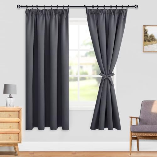 DWCN Dark Grey Curtains Blackout Curtains for Bedroom Thermal Insulated Curtain Pencil Pleat Window Curtains for Living Room with Tiebacks 46 x 72 inch Length, Dark Grey, 2 Panels