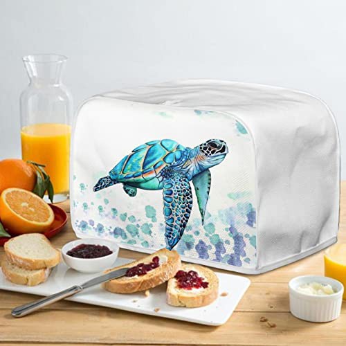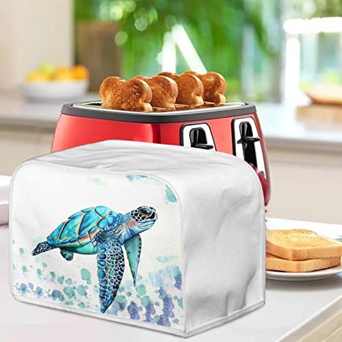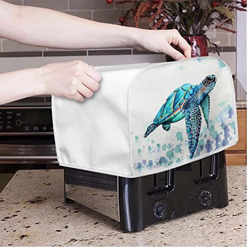 TOADDMOS Blue Sea Turtle Print Toaster Cover 4 Slice,Small Appliance Cover for Kitchen,Keep from Dust and Fingerprint