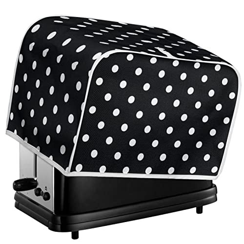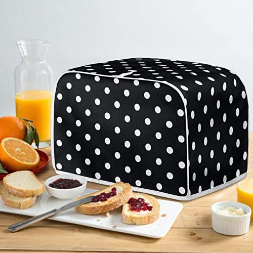 TOADDMOS Black White Polka Dots Print Toaster Cover 2 Slice,Small Kitchen Appliance Bread Maker Dust and Fingerprint Protection