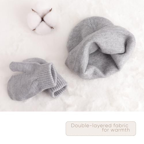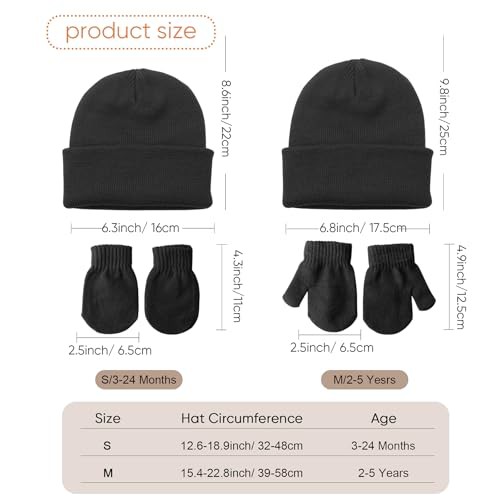 DRESHOW Baby Beanie Hat Mitten Set Infant Toddler Kids Winter Warm Knit Hat with Gloves for 3 Months - 5 Years Girls Boys Children