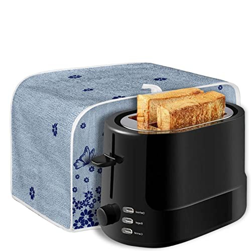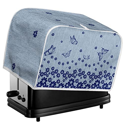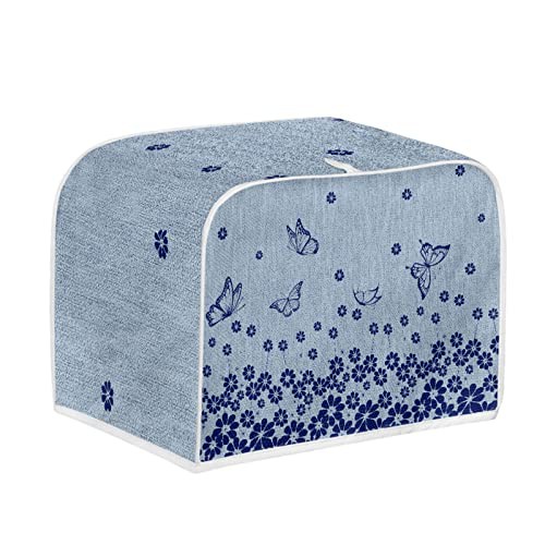 TOADDMOS Blue Butterfly Floral Print Toaster Cover 2 Slice with Top Hook,Kitchen Appliance Cover Toaster Dust and Fingerprint Protection