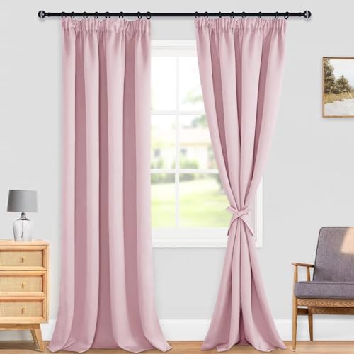 DWCN Pencil Pleat Curtains Blackout Curtains for Bedroom Thermal Insulated Room Darkening Curtains for Living Room 55 x 96 inch Length, Pink, 2 Panels