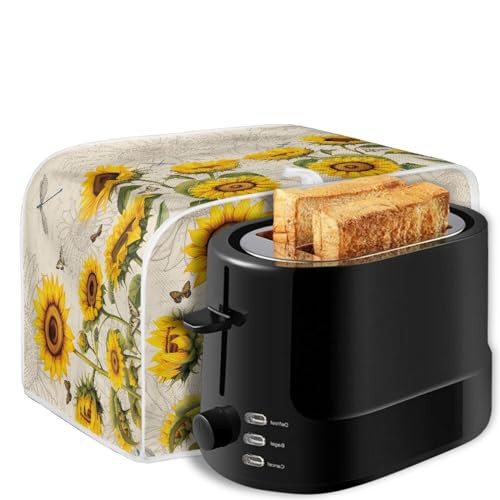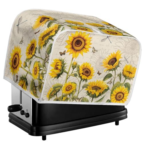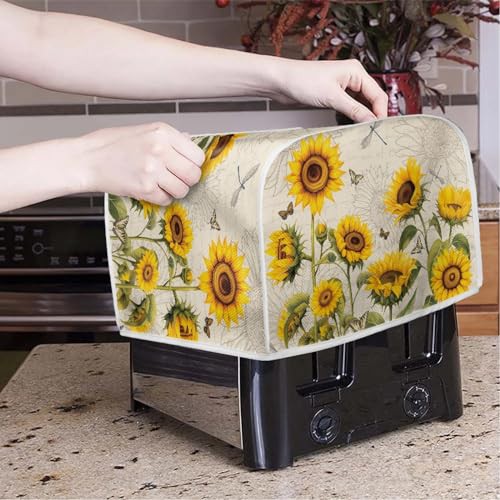 TOADDMOS Sunflower Butterfly Print Toaster Covers 2 Slice,Dust-Proof Bread Machine Protector for Home Kitchen