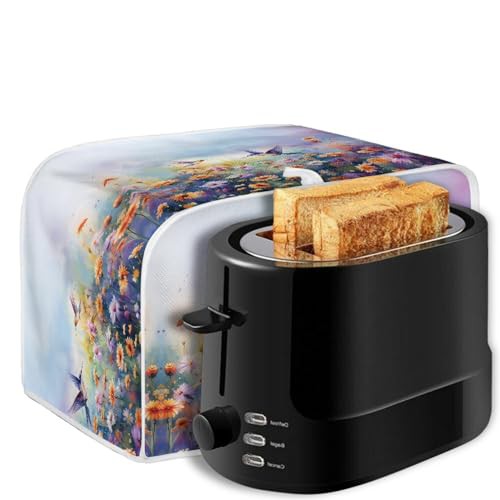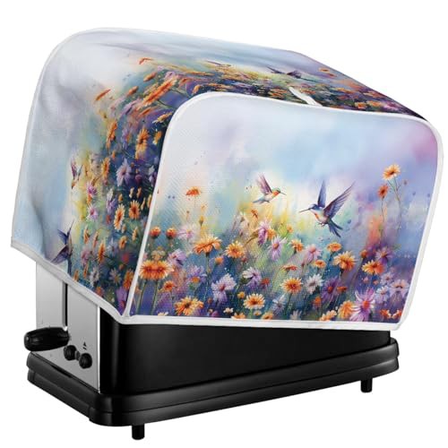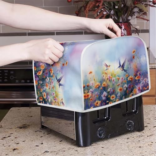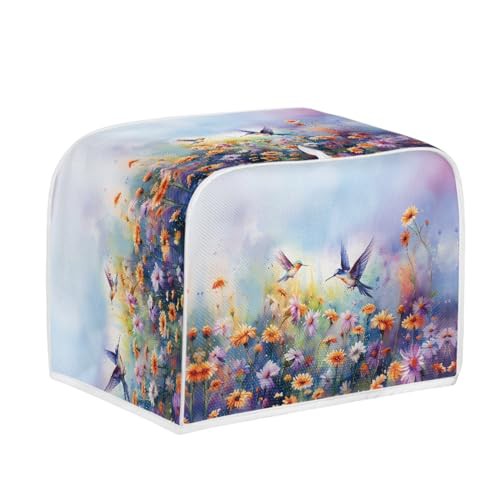 TOADDMOS Hummingbird Floral Print Toaster Cover 2 Slice,Dust Cover for Bread Machine,Toaster Dust Fingerprint Protection