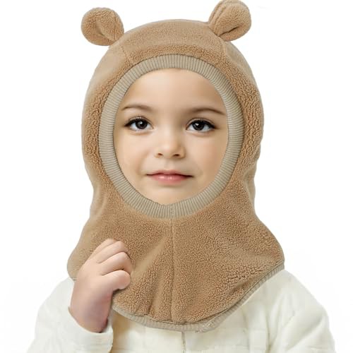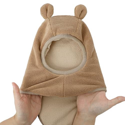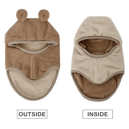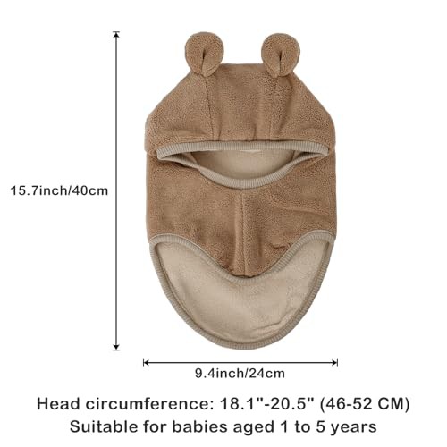 MASOCIO Toddler Hat Winter Warm Balaclava Infant Baby Boys Girls Knitted Thermal Wooly Snood Scarf 12 18 Months 2 3 4 Years Kids Children Bobble Beanie Age 1-5 Years Brown