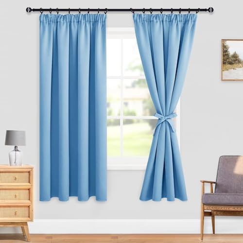 DWCN Blackout Curtains for Bedroom Thermal Insulated Curtain with Tiebacks Pencil Pleat Curtains for Living Room 55 x 69 inch Length, Light Blue, 2 Panels