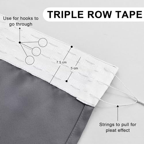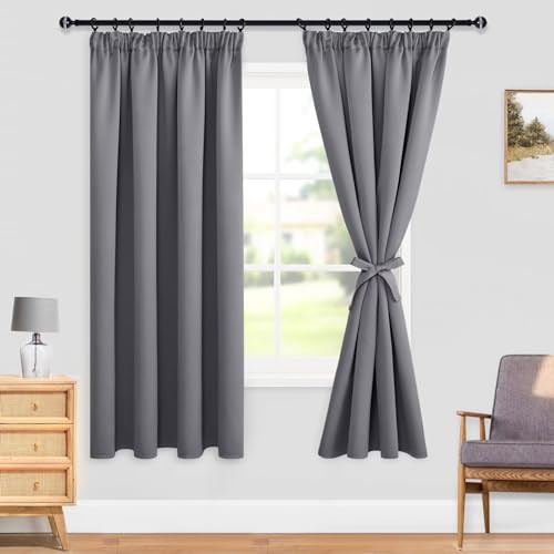 DWCN Grey Blackout Curtains for Bedroom Thermal Curtains Pencil Pleat Short Window Curtains with Hooks for Track Rail Curtains for Living Room 46 x 72 inch Length, Grey, 2 Panels