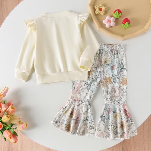 WYTbaby Baby Girl Clothes Set Long Sleeve Ruffle Sweatshirt Top +Printed flare Pant Outfits Set Fall Winter Outfit for Toddler Infant Baby Girl 3-24 Months