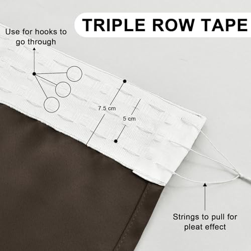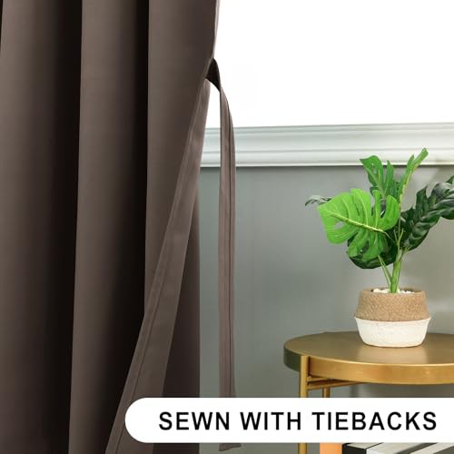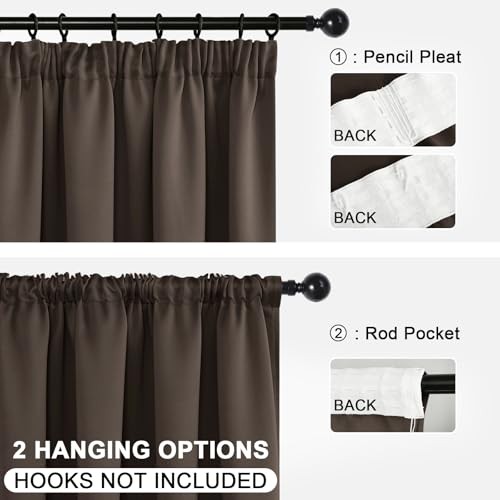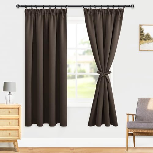 DWCN Blackout Curtains for Bedroom Thermal Insulated Curtain with Tiebacks Pencil Pleat Curtains for Living Room 46 x 54 inch Length, Brown, 2 Panels