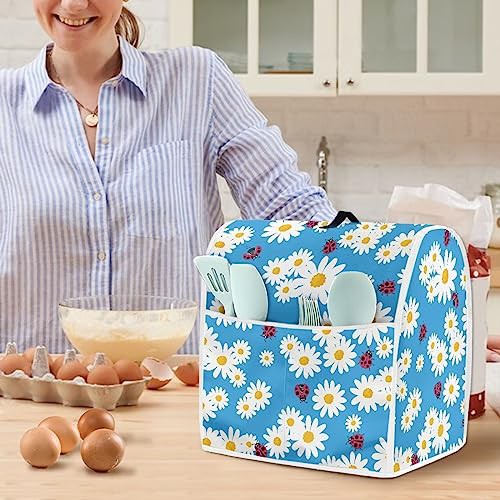Poceacles Blue Daisy Ladybird with Seven Stars Pattern Kitchen Mixer Cover with Pockets and Handle Kitchen Stand Mixer Cover Compatible with 4.5-5 Quart Mixers, S