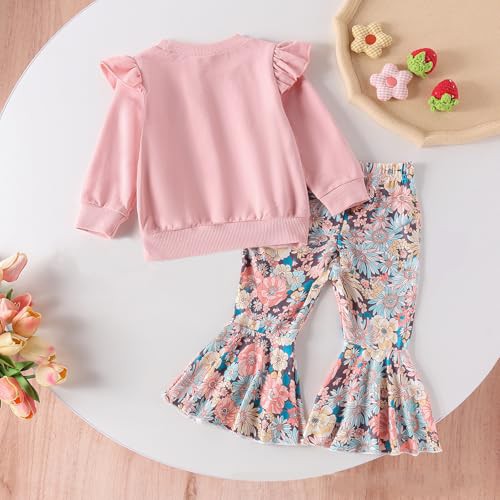 WYTbaby Baby Girl Clothes Set Long Sleeve Ruffle Sweatshirt Top +Printed flare Pant Outfits Set Fall Winter Outfit for Toddler Infant Baby Girl 3-24 Months