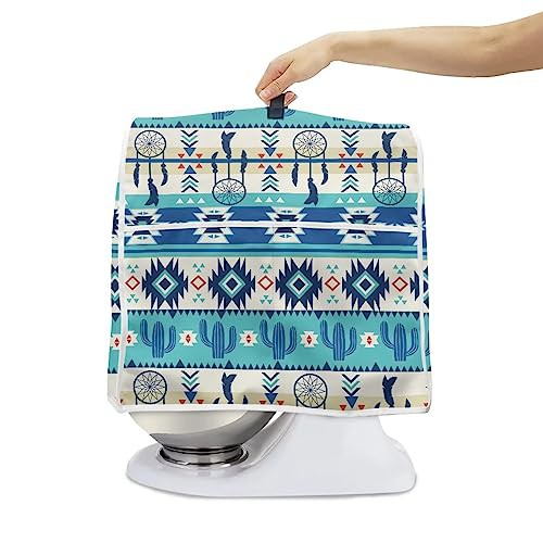 Poceacles Aztec Native Tribal Cactus Pattern Mixer Covers Indoor Kitchen Decorations, Polyester Dustproof Cover with Pockets for Stand Mixer, Compatible with 6-8 Quart, L