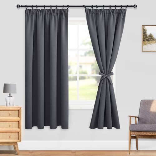 DWCN Dark Grey Curtains Blackout Curtains for Bedroom Thermal Insulated Curtain Pencil Pleat Window Curtains for Living Room with Tiebacks 46 x 54 inch Length, Dark Grey, 2 Panels