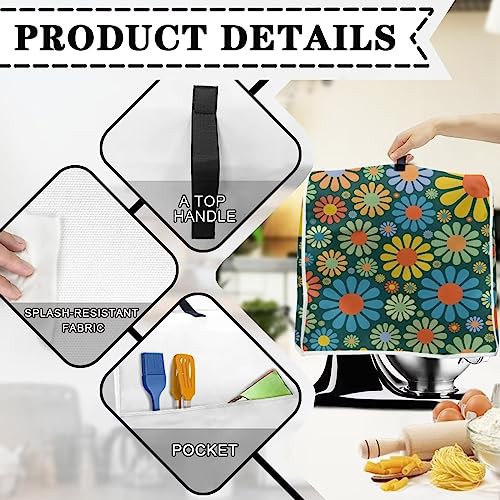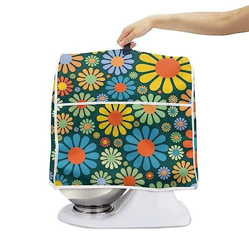 Poceacles Hippie Flowers Pattern Decorative Cover for Bread Machine, Stand Mixer Cover, Lightweight Protective Cover for Kitchen Mixers, Dustproof and Fingerprint Resistant, L