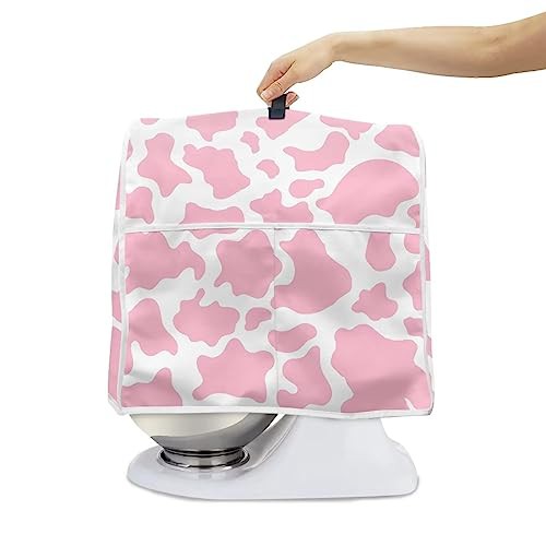 Poceacles Pink White Cow Spots Pattern Stand Mixer Cover Compatible with 4.5-5 Quart Stand Mixer, Mixer Accessories Fits for Most Tilt Head & Bowl Lift, S