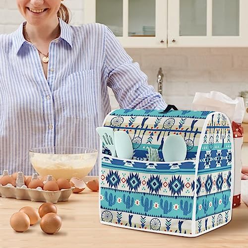Poceacles Aztec Native Tribal Cactus Pattern Mixer Covers Indoor Kitchen Decorations, Polyester Dustproof Cover with Pockets for Stand Mixer, Compatible with 4.5-5 Quart, S