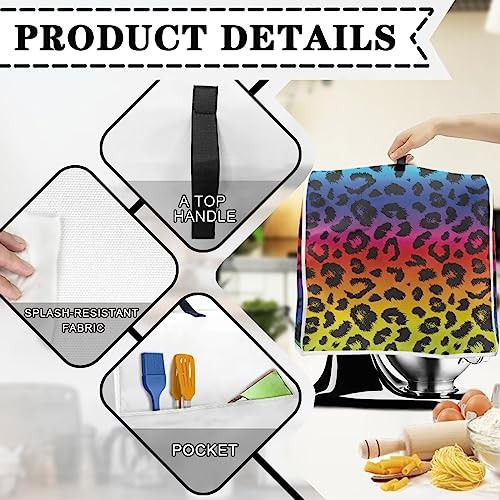 Poceacles Gradient Leopard Pattern Stand Mixer Cover with Pocket, Kitchen Mixer Covers Compatible with 4.5-5 Quarts Stand Mixer/Tilt Head & Bowl Lift Models, S