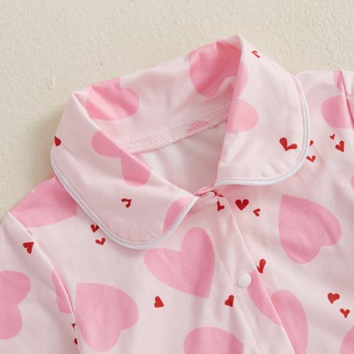 Vioyavo Kids Pajamas Set Baby Girls Sleepwear Heart Print Long Sleeves Shirt Elastic Pants 2 Piece Loungewear