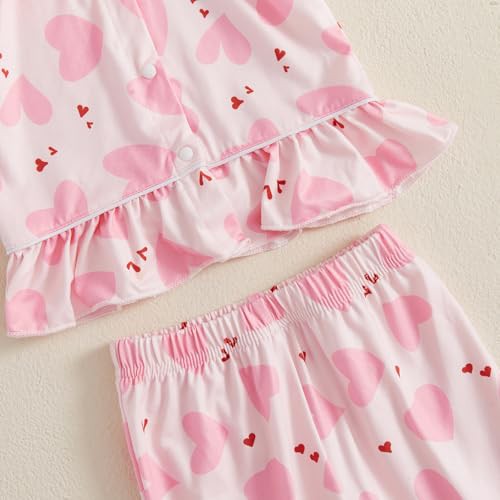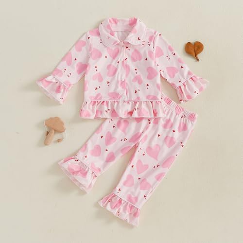 Vioyavo Kids Pajamas Set Baby Girls Sleepwear Heart Print Long Sleeves Shirt Elastic Pants 2 Piece Loungewear