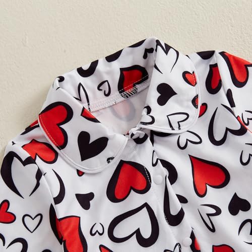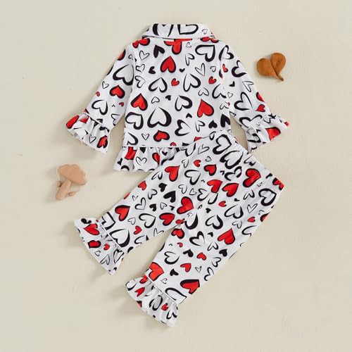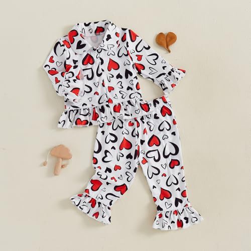 Vioyavo Kids Pajamas Set Baby Girls Sleepwear Heart Print Long Sleeves Shirt Elastic Pants 2 Piece Loungewear