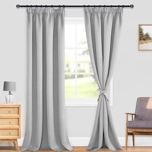 DWCN Blackout Curtains for Bedroom Thermal Insulated Curtains with Tiebacks Pencil Pleat Window Curtains for Living Room 55 x 96 inch Length, Silver Grey, 2 Panels