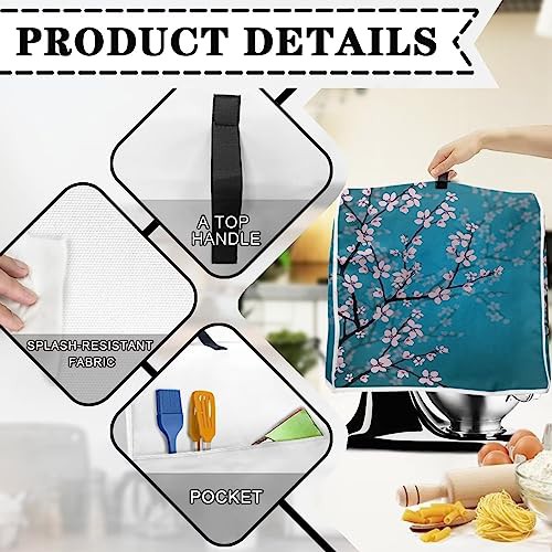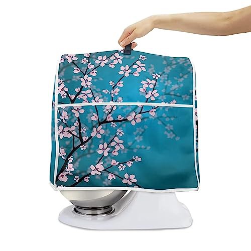 Poceacles Blue Cherry Blossoms Pattern Stand Mixer Covers Fit Tilt Head and Bowl Lift Models Mixers, Washable Kitchen Appliance Cover for Coffee Maker, L
