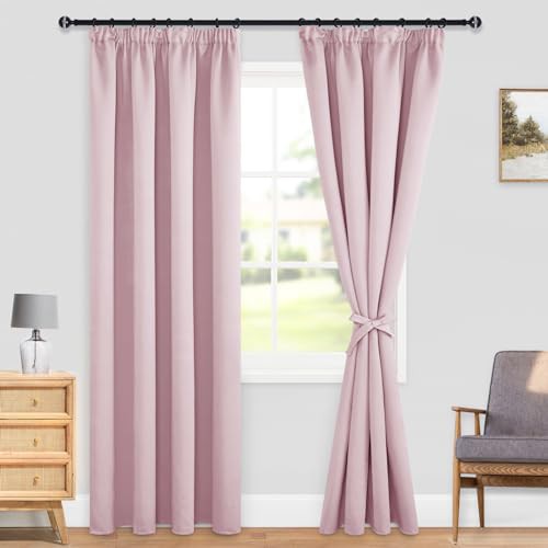 DWCN Blackout Curtains for Bedroom Thermal Insulated Room Darkening Pencil Pleat Window Curtains for Living Room 46 x 90 inch Length, Pink, 2 Panels