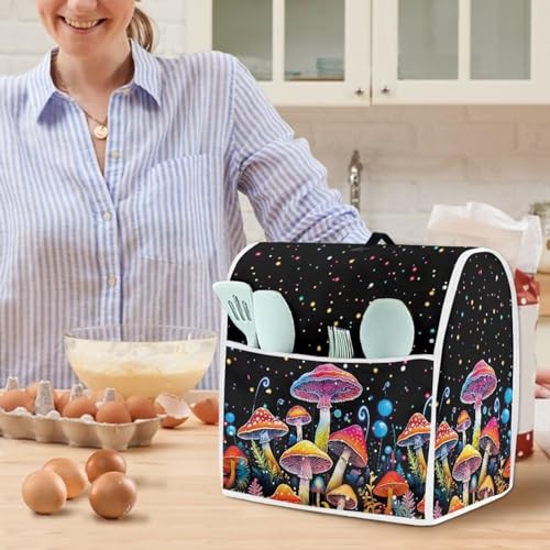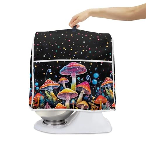 Poceacles Mushroom Galaxy Print Stand Mixer Cover, Protective Dust Cover with Top Handle and Pockets Compatible with 4.5-5 Quarts Stand Mixer, S