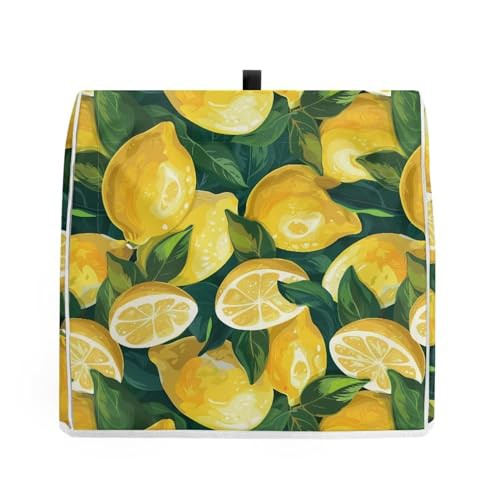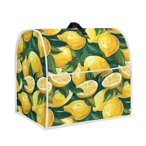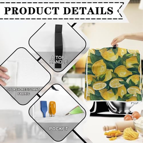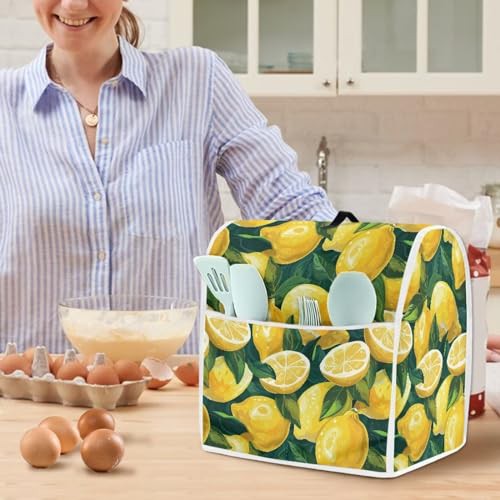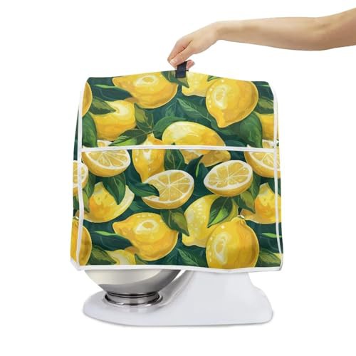 Poceacles Green Leaf Lemon Print Stand Mixer Cover with Pockets Dust Cover Kitchen Aid Mixer Cover Compatible with 4.5-5 Quarts, Kitchen Aid Mixer Accessories, S