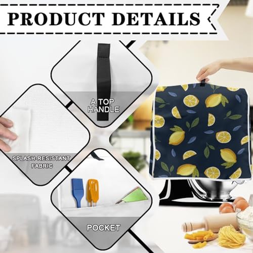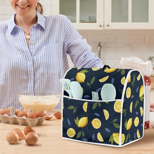 Poceacles Lemon Stand Mixer Cover, Kitchen Mixer Cover with Pocket for Stand Mixer, Food Mixer Cover Kitchen Blender Cover Toaster Blender Covers Kitchen Small Appliance Dust Cover