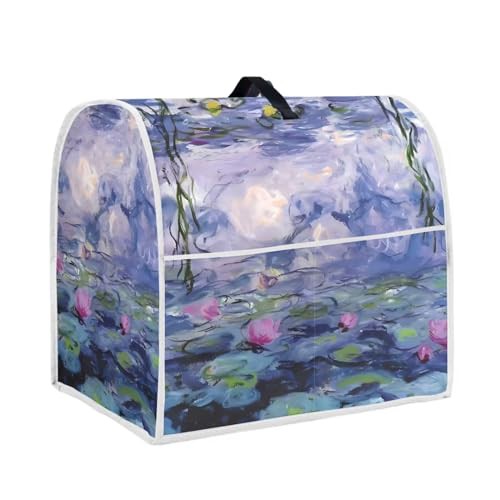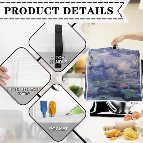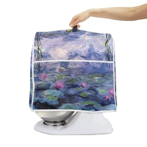 Poceacles Oil Painting Lotus Flower Print Stand Mixer Cover with Pockets Dust Cover Kitchen Aid Mixer Cover Compatible with 6-8 Quarts, Kitchen Aid Mixer Accessories