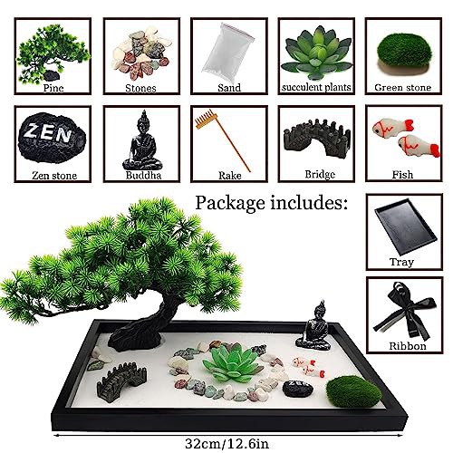 LuXianYS Japanese Zen Garden,Zen Garden Kit,Mini Zen Garden Home Decoration,Meditation Gift Set,Zen Garden Buddha Candle Holder Incense Holder for Meditation, Relaxation and Gift