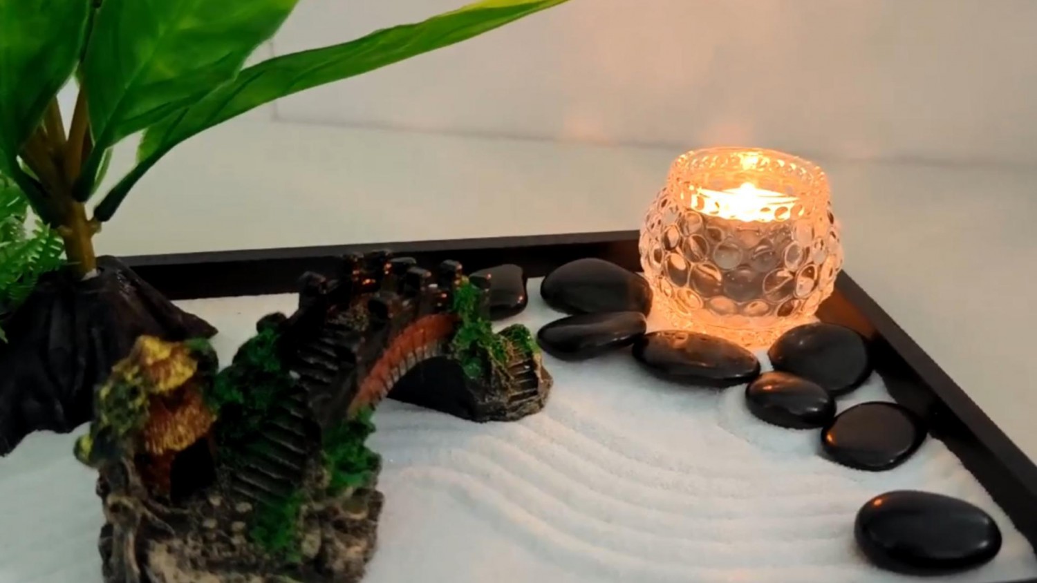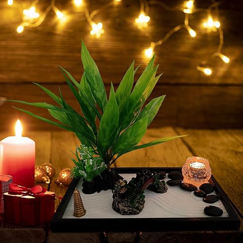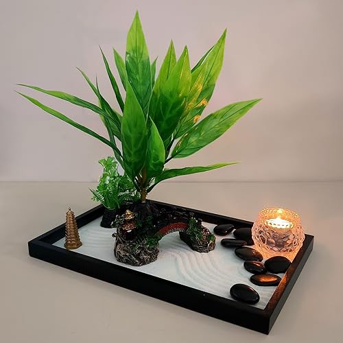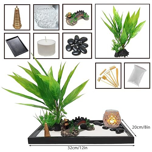 LuXianYS Zen Garden Kit 12x8in, Miniature Desktop Meditation Zen Garden Set, Japanese Zen Sand Garden, Candle Holder Zen Garden Gift Set with Rake, Rocks, Desktop Meditation Room Decor Tray