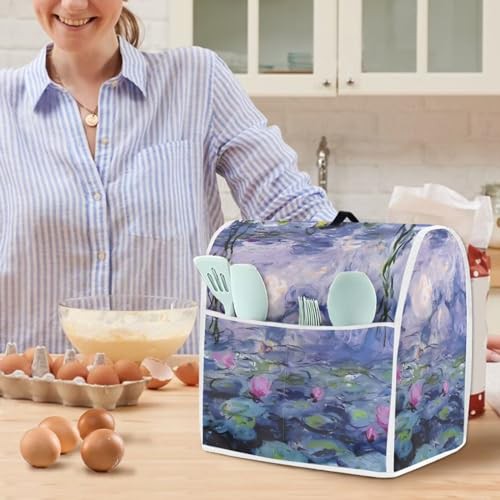 Poceacles Oil Painting Lotus Flower Print Stand Mixer Cover with Pockets Dust Cover Kitchen Aid Mixer Cover Compatible with 4.5-5 Quarts, Kitchen Aid Mixer Accessories