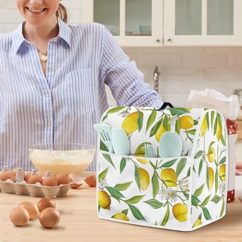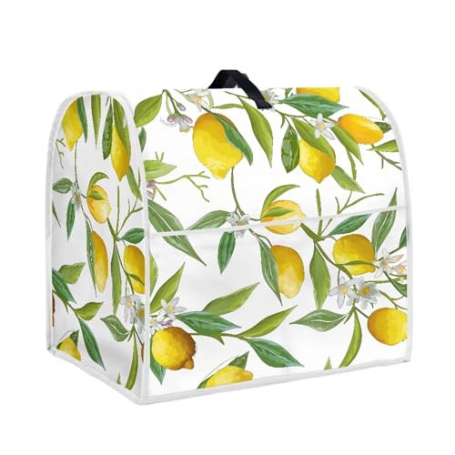 Poceacles Lemon Leaf Kitchen Mixer Covers, White Stand Mixer Cover Washable Dust Protective Toaster Blender Covers Fit Tilt Head and Bowl Lift Models Mixers, Kitchen Mixer Decoration