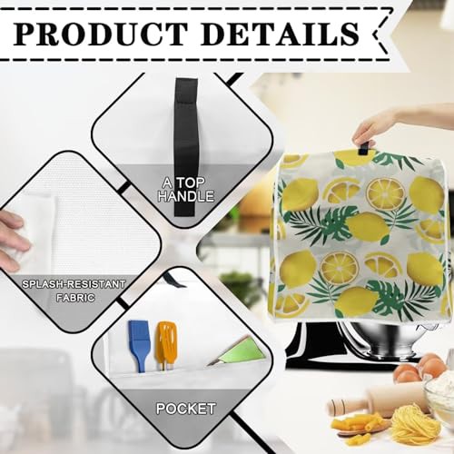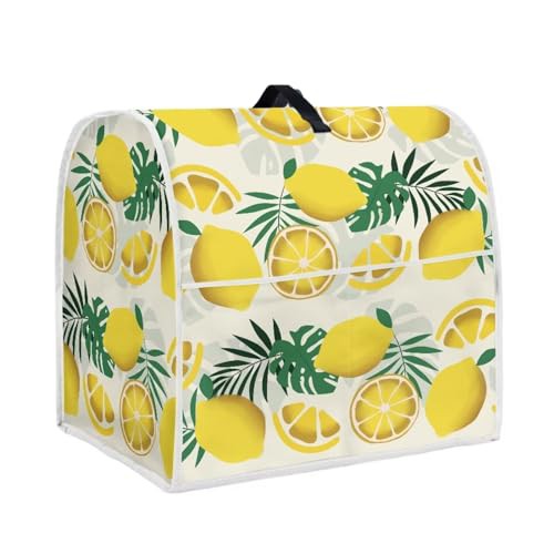 Poceacles Lemon Leaf Tropical Monstera Print Stand Mixer Cover Kitchen Mixer Cover with Top Handle and Pocket Small Appliance Protector Cover Food Mixer Dust Cover