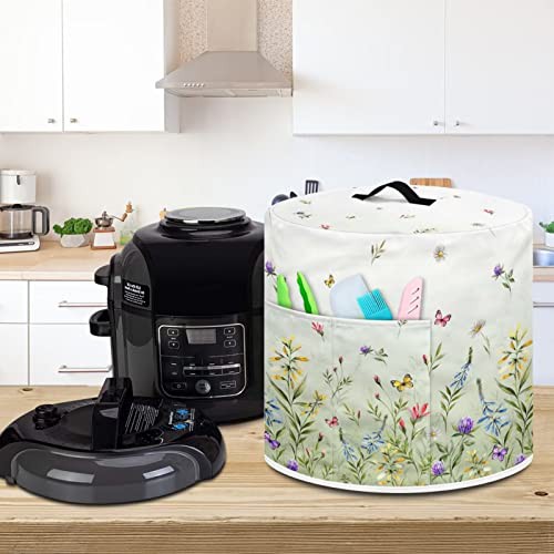 NETILGEN Dust Cover for 6 Quart Instant Pot and Extra Accessories, Dust Proof Easy to Clean Pressure Cooker Cover Electric Appliance Cover Air Fryer Accessories with Storage Pocket, Floral Green