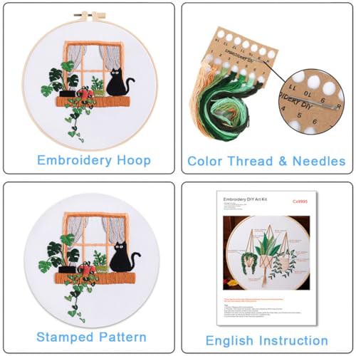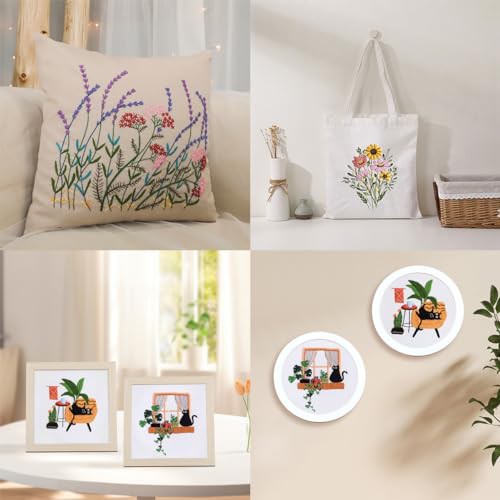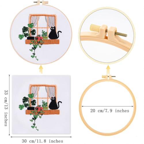 Traziewell Embroidery Kit for Adults Cat Pattern Cross Stitch Kit Including Embroidery Fabrics with Patterned Threads Needles Hoops and Instructions, 0120