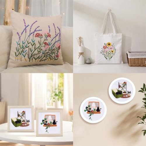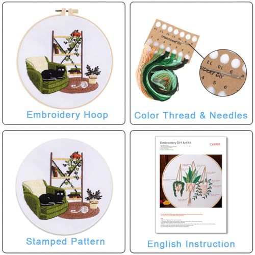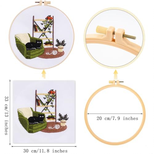 Traziewell Embroidery Starter Kit Black Cat Cross Stitch Kit with Instructions with Embroidery Hoops Threads and Needles for Beginners Adults DIY Craft, 0122